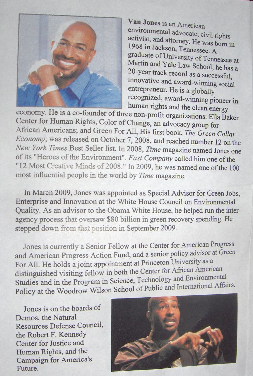 Vem Van Jones är kan du googla om, men annars framgår det tydligt av presentationen som vi fick på the Kennedy School:
